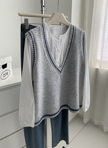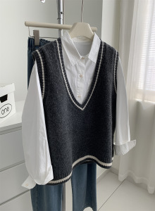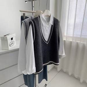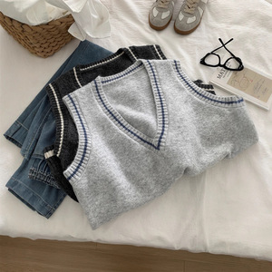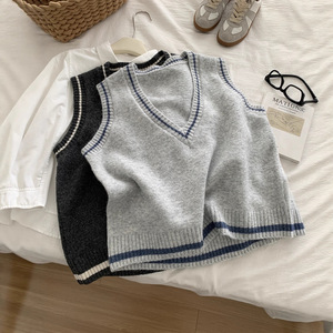 韩系减龄学院风V领羊毛针织马甲女松弛感25秋冬保暖叠穿毛衣背心
