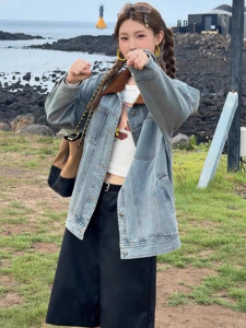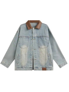 港风牛仔休闲美式复古日系工装风衣长款男女宽松上衣潮牛仔外套潮
