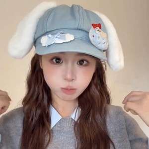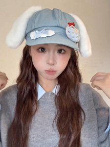 甜美可爱小猫毛绒耳朵百搭云朵八角帽子女贝雷帽显脸小画家帽秋冬
