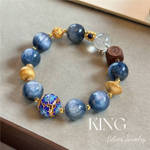 沧海遗琅手串 | 蓝晶石景泰蓝药片切直切超重工显白拉丝纯银珠串