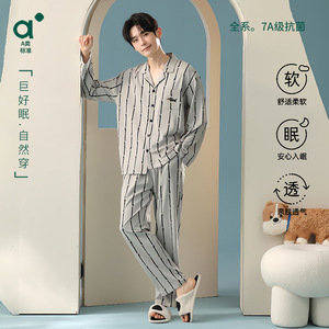 【抗菌新疆棉】条纹长袖情侣睡衣纯棉春秋季简约男女款家居服套装