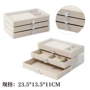 三层透明简约经典大容量绒布首饰盒收纳盒项链耳环戒指亚克力抽屉