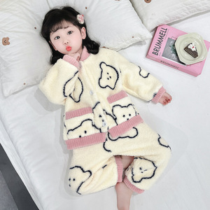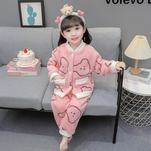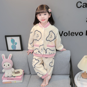 女童睡衣秋冬款2025新款珊瑚绒女宝加厚法兰绒冬季儿童家居服套装