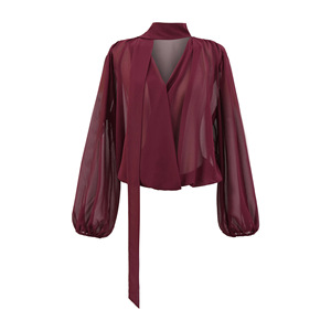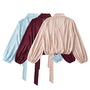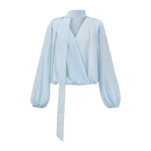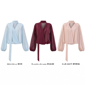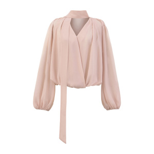 法式复古韵味感气质显瘦衬衫上衣女松紧高腰深V领飘带围脖衬衣