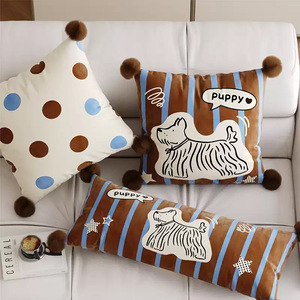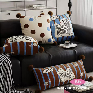 可爱复古小狗抱枕靠枕套沙发床头靠垫腰枕夹腿睡觉长条美拉德抱枕