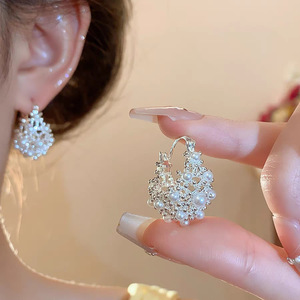 时尚韩版立体镂空珍珠耳环个性独特气质耳钉耳扣轻奢设计小众耳饰
