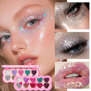 亮片眼影亚马逊跨境彩妆批发YABAOLIAN珠光眼影爱心十色闪片眼影