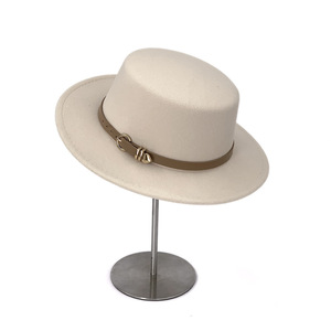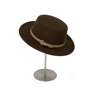 外贸新款复古黑色宽檐毛呢平顶礼帽女秋冬英伦跨境皮带巴拿马帽子