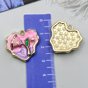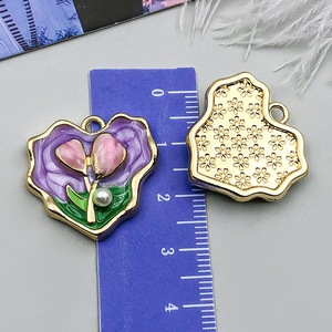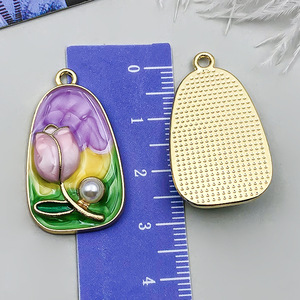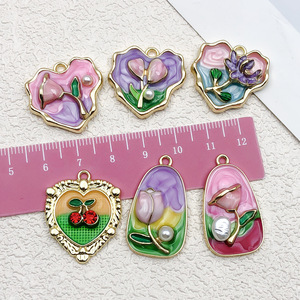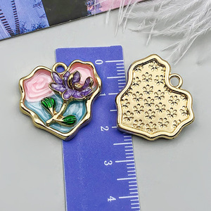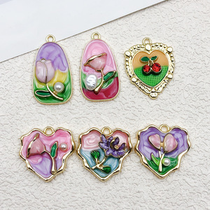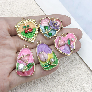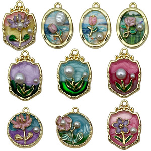 复古法式DIY珐琅耳饰项链花朵吊坠油画莫奈花园合金滴油饰品配件