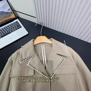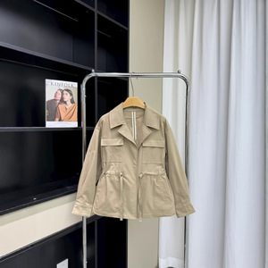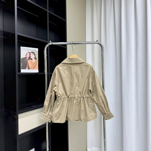 032132 秋季新品女士裙摆风衣外套 经典时尚抽大口袋绳收腰上衣
