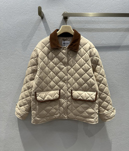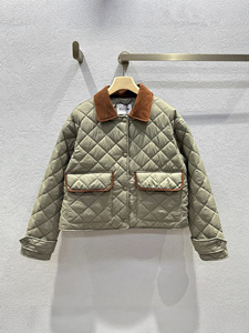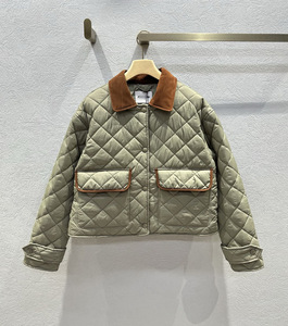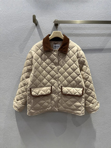 南油高端女装2025年秋冬Miu*新品撞色拼接翻领菱格纹棉服外套女