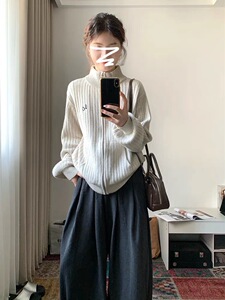 半高领慵懒风毛衣外套女早秋2025新款韩系设计感针织上衣秋冬外搭