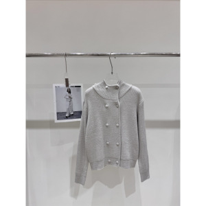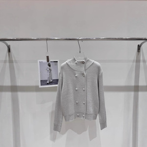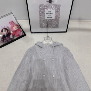 25年秋季新款针织双排扣宽松连帽简约休闲长袖开衫百搭女毛衣外套