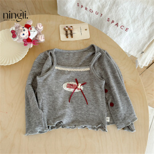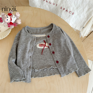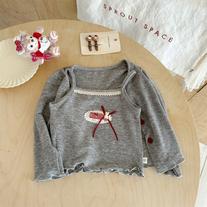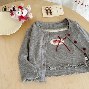 【秋季新品】柠里女童春秋季上新韩系蝴蝶结背心+开衫两件套套装