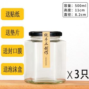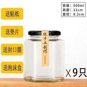 六棱玻璃罐密封食品级小带盖空一斤柠檬膏蜂蜜辣椒果酱瓶子