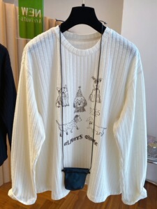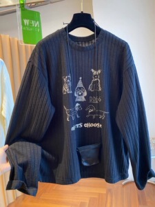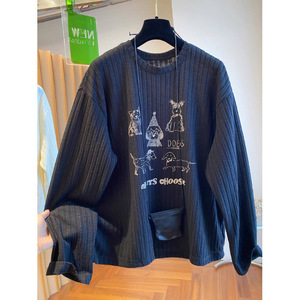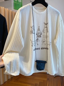 官图秋季新款加大码200斤休闲日常通勤坑条印花t恤女长袖宽松上衣