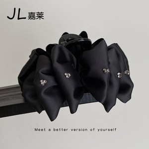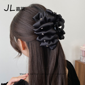 优雅气质缎面泡泡抓夹女大号发量多鲨鱼夹子后脑勺发夹盘头发卡
