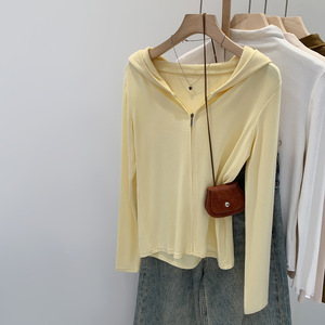 黄色连帽开衫T恤女装潮美式秋季2025新款设计感好看防晒外套上衣
