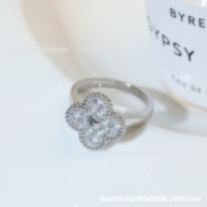 梵家高版本镀18K玫瑰金四叶草白贝母戒指无钻孔雀石时尚个性指环