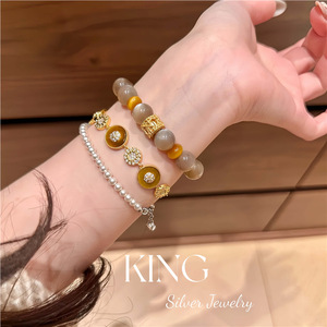 焦糖饼干| king银饰珠宝S925银镀金虎眼贝母复古时尚轻奢纯银手链