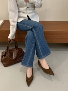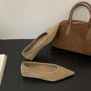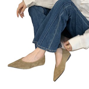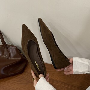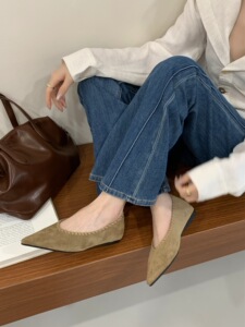 绒面尖头一脚蹬软底单鞋女2025秋冬季新款气质百搭内增高浅口瓢鞋