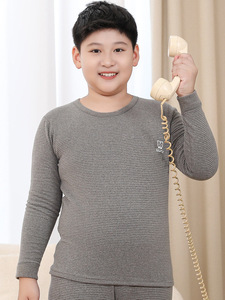 胖童加厚秋衣上衣大码磨毛儿童男孩大童青少年加肥加大保暖打底衫