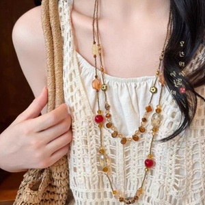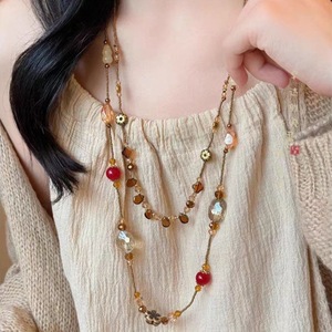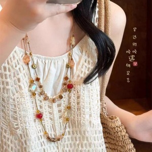 新中式花朵吊坠双层项链女复古宫廷风个性串珠毛衣链小众百搭项饰