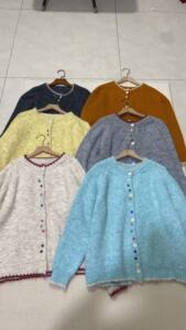 温柔风软糯圆领不规则彩扣毛衣外套女秋冬新款宽松针织开衫上衣女