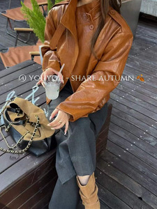 甜酷机车皮衣外套女欧洲站2025年秋季新款休闲立领双排扣夹克上衣