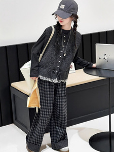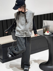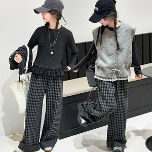 女童针织马甲套装春秋5新女大童韩系穿搭儿童秋装开衫三件套