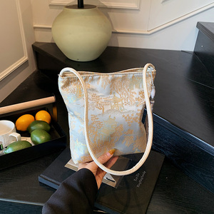 新中式包包女士2025新款时尚百搭休闲单肩包大容量超火通勤水桶包