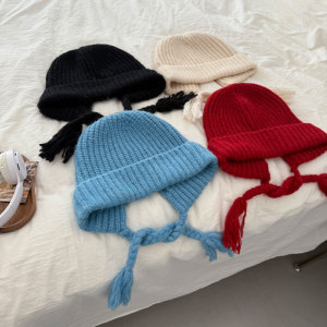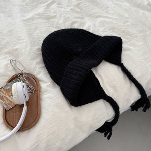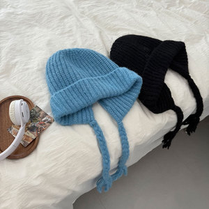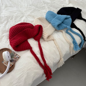 网红款奶油甜妹风冬可爱流苏辫子护耳帽毛线包头显脸小保暖针织帽
