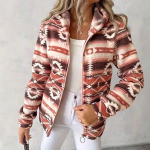 欧美跨境热销爆款印花双面毛绒连帽拉链开衫女士秋冬毛绒外套外贸