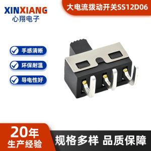 SS12D06弯脚大电流拨动开关两档三脚插件滑动波段开关