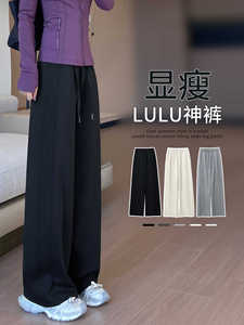 黑色运动裤女2025新款春秋季高腰直筒宽松卫裤休闲窄版香蕉阔腿裤