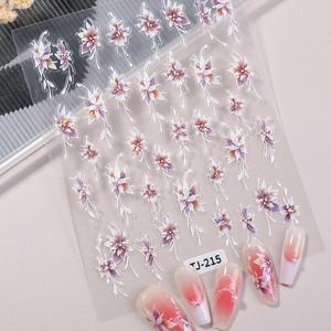极光雪割草美甲贴纸5D浮雕立体简约手绘花朵diy指甲贴纸饰品 TJ款
