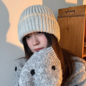 韩国订单羊毛混纺2025年新款秋冬大头围保暖针织帽显脸小毛线帽女