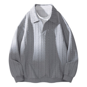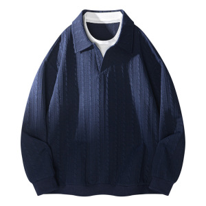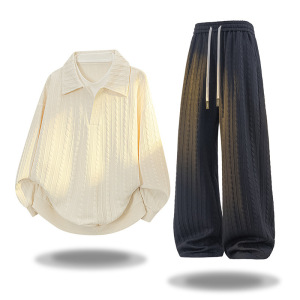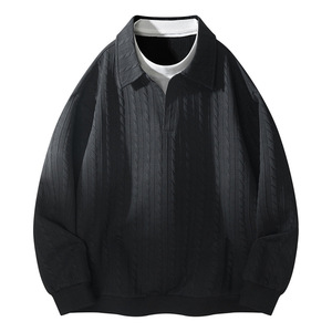 大码男士套装潮牌美式假两件翻领肌理拼接卫衣提花阔腿裤子两件套