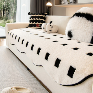 不规则异形沙发垫高级感秋冬2025新款直排毛绒坐垫防滑套罩盖布巾