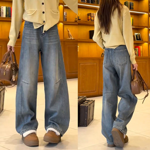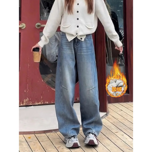香蕉裤女2025新款高腰阔腿裤秋季弯刀裤宽松时尚牛仔裤高腰镰刀裤