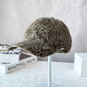 批发25年秋冬新款复古印花牛仔棒球帽女显脸小鸭舌帽韩版潮帽子