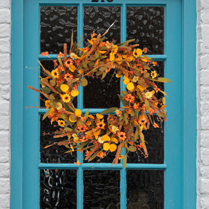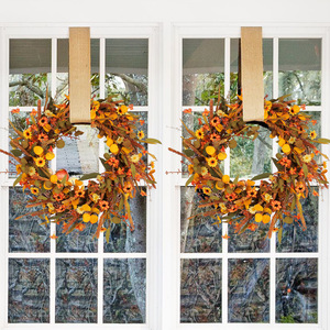 亚马逊新款秋季野花花环门挂 丰收感恩节仿真花藤圈墙壁挂装饰品