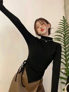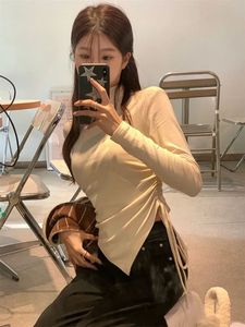 美式复古插肩长袖t恤女秋季短款修身紧身正肩早秋内搭打底衫上衣