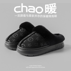 大牌居家男女情侣仿皮防水室内外防滑家用保暖拖鞋软底加绒棉拖冬