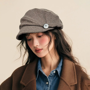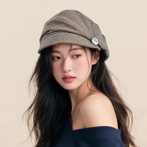 日系褶皱银标宽松贝雷帽女复古休闲百搭文艺画家帽显脸小蓓蕾帽子