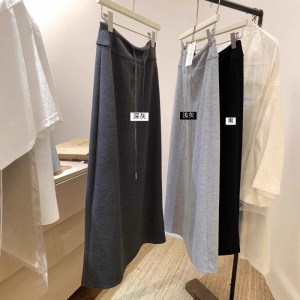 韩系简约通勤款!2025秋季气质显瘦百搭高腰抽绳开车半身裙女