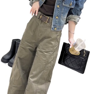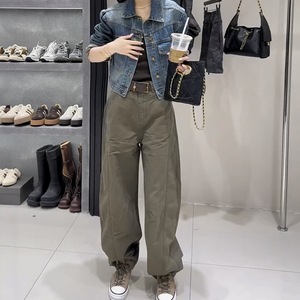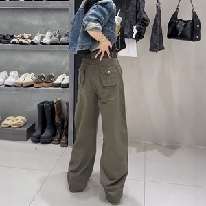 2025秋季新款工装牛仔裤女大码宽松显瘦窄版直筒阔腿裤胖mm拖地裤