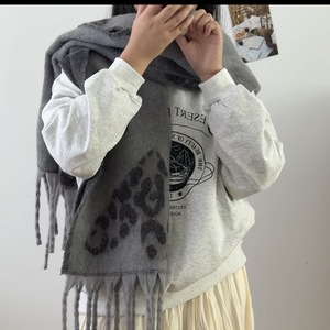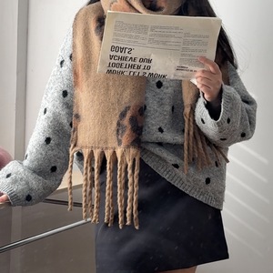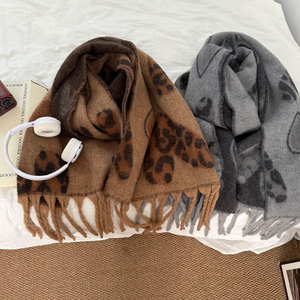 复古老钱风豹纹流苏围巾女2025秋冬新款加厚披肩保暖高级感围脖男