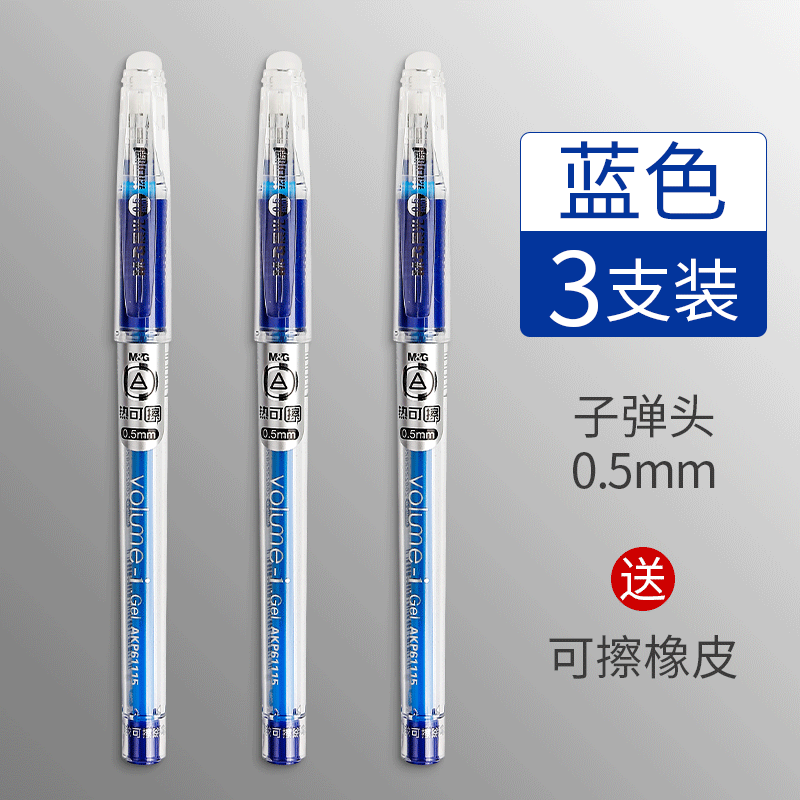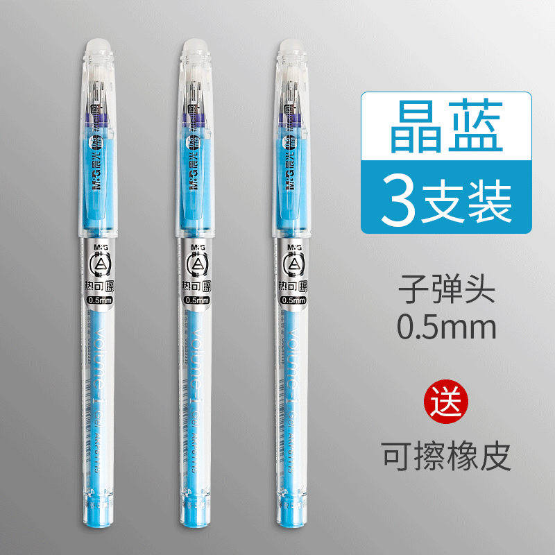 晨光热可擦中性笔小学生三年级摩易可擦写0.5mm黑色蓝色晶蓝墨蓝