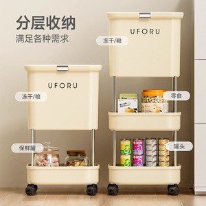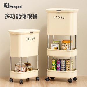 猫粮储存桶置物架狗粮储粮桶带轮子宠物零食罐头收纳密封防潮盒子